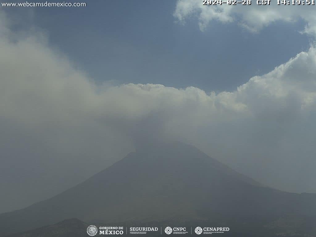 La Coordinación Nacional de Protección Civil (CNPC) informa que el volcán Popocatépetl se mantiene en el nivel de alerta amarilla fase 2, y reitera que, hasta el momento, la actividad del coloso no representa riesgo para la población. Lo anterior, con corte a las 11:00h del miércoles 28 de febrero.
